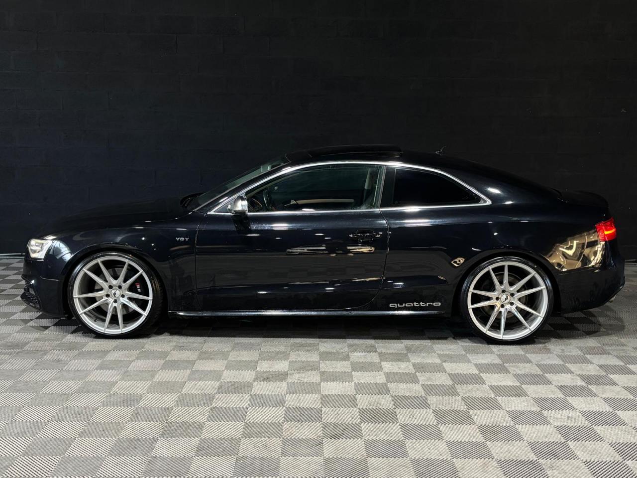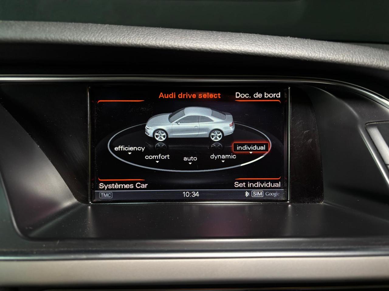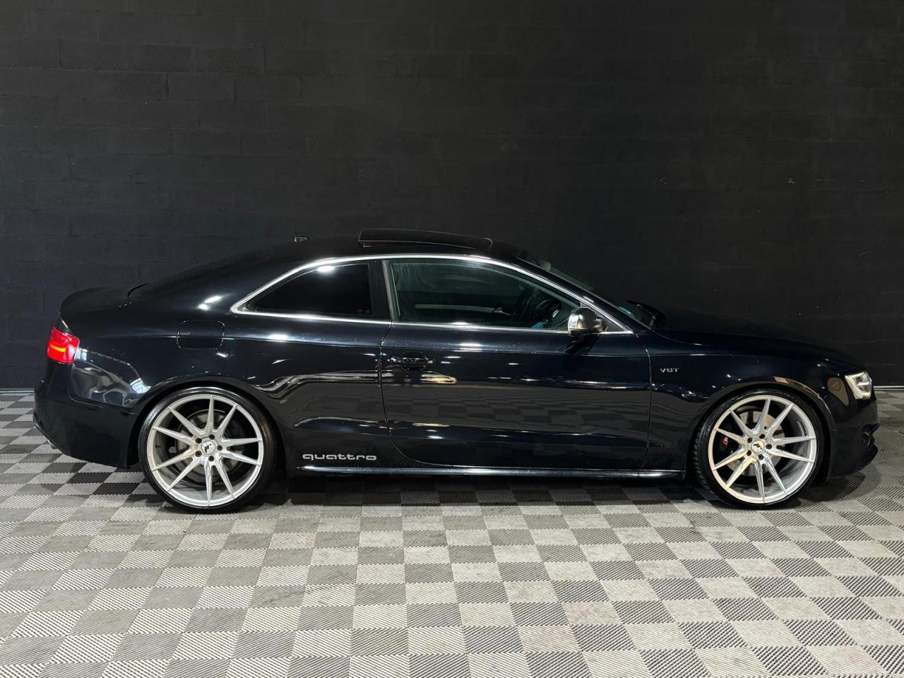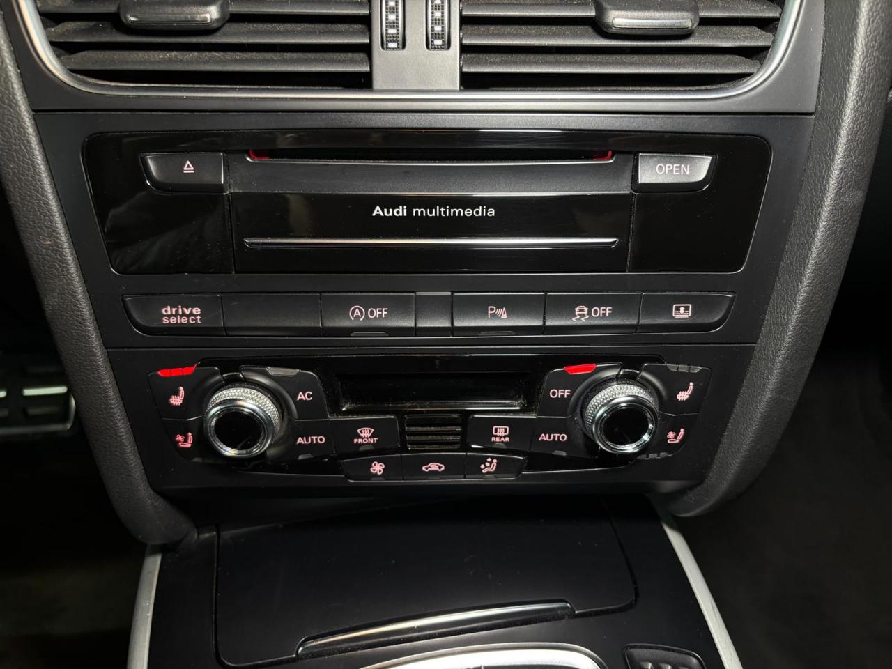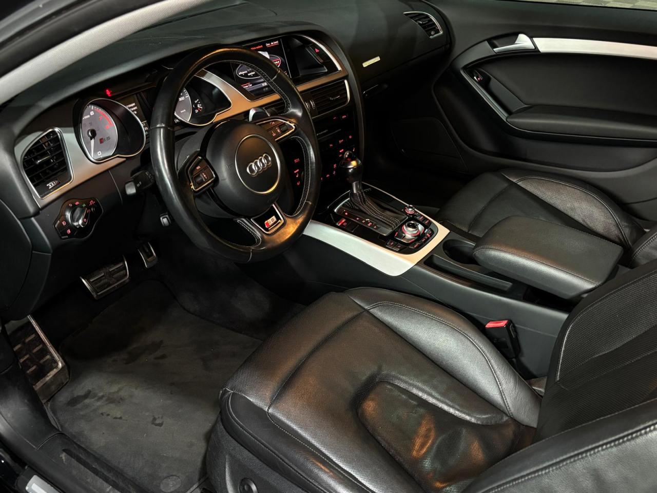 4 œilletons de fixation dans le coffre, pour maintenir les bagages et objets ; points d'accrochage pour le filet mixteAccoudoir central avant avec vide-pochesAdvanced Key : système d'autorisation d'accès et de démarrage main libreAirbags grand volume pour conducteur et passager avant avec détection de position d'assiseAirbags latérauxAllume-cigare intégré dans le cendrier avantAntipatinage électronique ASRApplications décoratives en aluminium brossé mat sur les contre-portes, les garnitures latérales à l'arrière ainsi que sur la console centraleAppuie-tête avant et arrière règlables en hauteurAudi Hold AssistAudi Tracking SystemAvertisseur deux tons avec commande au centre du volantBecquet arrière intégré au couvercle de coffreBlocage électronique de différentiel EDSCapot de coffre à ouverture automatique lors du déverrouillage du coffre par la télécommande, par la touche située sur la portière ou par actionnement de la touche douce sur le capot de coffre. Fermeture manuelleCarrosserie galvaniséeCeintures de sécurité automatiques à trois points pour les quatre places, avec contrôle du port de ceinture à l'avant, couleur assortie à celle de l'habitacleCendriers dans la console centrale à l'avant et à l'arrièreChâssis sport S avec suspension et amortisseurs plus fermes pour un contact plus direct avec la chaussée et une conduite sportive ; incluant jambes de force en dôme, essieu avant allégé à 5 bras avec essieu radial virtuel, barre stabilisatrice tubulaire ; essiCiel de pavillon en tissu, selon la couleur choisie, argent lunaire ou noirClimatisation automatique Confort Plus 3 zones à fonctionnalités étendues et affichage numériqueColonne de direction de sécurité : contient un système mécanique de déplacement avec fonction d'amortissement qui complète le potentiel de sécurité de la ceinture et de l'airbagContact d'allumage électronique ; clé de contact pouvant mémoriser différentes données d'entretienContrôle de pression des pneus : vérifie durant la marche la pression de chacune des rouesCric dans le coffreDésactivation de l'airbag du passager avantDétecteur de pluie et allumage automatique des projecteursDossier des sièges arrière rabattable séparément 2/3 - 1/3, avec déverrouillage à distance des dossiers depuis le coffreEclairage intérieur à extinction temporisée et contacteurs sur toutes les portières ; éclairage coffre, conducteur passager avant et arrière, deux spots de lecture à l'avant, éclairage intérieur de l'arrière, miroir de cEcrous antivolEntourages de vitre en aluminium, revêtement noir brillant sur les montants de pavillon centraux et les vitres de custode arrièreEtui à lunettes dans le module d'éclairage intérieur, à l'avant, au-dessus du rétroviseurFonction Start/Stop : coupure et redémarrage automatiques du moteur en cas d'arrêt prolongé, désactivable par un bouton sur la console centraleFrein de stationnement électromécanique : comprend la fonction de frein de stationnement à l'arrêt, assistance de démarrage avec désactivation automatique lors du démarrage et fonction de freinage d'urgence sur les quatre rouesGPS PlusIndicateur d'usure des garnitures de frein à l'avant, affichage dans le système d'information de conducteurIndicateur de rapport de vitesse dans le système d'information du conducteur : apporte assistance au conducteur dans le choix du rapport de vitesse adaptéIndicateur de température extérieure dans le système d'information du conducteur, en cas de températures inférieures à +5 °C, un cristal de glace apparaît sur l'afficheur, avertissant de la possibilité de verglasInstrumentation à éclairage réglable, tachymètre électronique avec compteur kilométrique totalisateur et journalier, compte-tours, horloge, indicateur de température du liquide de refroidissement et jauge de carburantJantes en aluminium coulé style S 5 branches doubles, 8,5 J x 18”, avec pneus 245/40 R18Lave-glace, deux vitesses, réglage d'intermittence sur 4 niveaux, commande de balayage coup par coup, lavage-balayage automatiqueLève-vitres avant électriques avec protection antipincement et fonction confort d'ouverture/fermeture par impulsion ; vitres arrière fixesLimiteurs d'effort des ceintures de sécurité avantLunette arrière dégivrante avec minuterieOrdinateur de bord couleur et système de contrôle autocheck (incluant programme efficiency)Outillage de bord dans le coffrePack EclairagePhares antibrouillard intégrés dans le pare-chocsPoignées de maintien amorties, rabattables à 2 positions, encastrées dans le ciel de pavillonPoignées de portes couleur carrosseriePré-équipement attelagePréparation ISOFIX pour sièges latéraux arrière et siège passager avantPréparation téléphone 2 W bi-bande (D et E), sans support pour adaptateur ni antenne de toit, commande sur volant multifonction, mains libres, interface BluetoothPrétensionneurs des ceintures de sécurité avantProgramme électronique de stabilisation ESC : relie ABS, EBV, ASR et EDS avec ses propres capteurs et compare les données de conduite avec les données de référence ; assure davantage de stabilité par freinage ciblé des roues et intervention dans la geProtection antidémarrage électronique, intégrée à la gestion du moteur, activation automatique par la clé du véhiculeQuattro: transmission intégrale permanente avec répartition asymétrique et dynamique de coupleRangements dans les contre-portes à l'avant avec casier de rangement pour boissons, rangements à l'arrière sur les côtés du siège et dans les garnitures latérales arrièreRéglage d'appuis lombaires électriques sur 4 plans pour sièges avantRégulateur de vitesse électronique actif dès 30 km/hRétroviseur intérieur jour/nuit automatique incluant une bande grise en haut du pare-briseRétroviseurs extérieurs avec clignotant latéral intégré à diodes, réglable électriquement, boîtiers dans la couleur