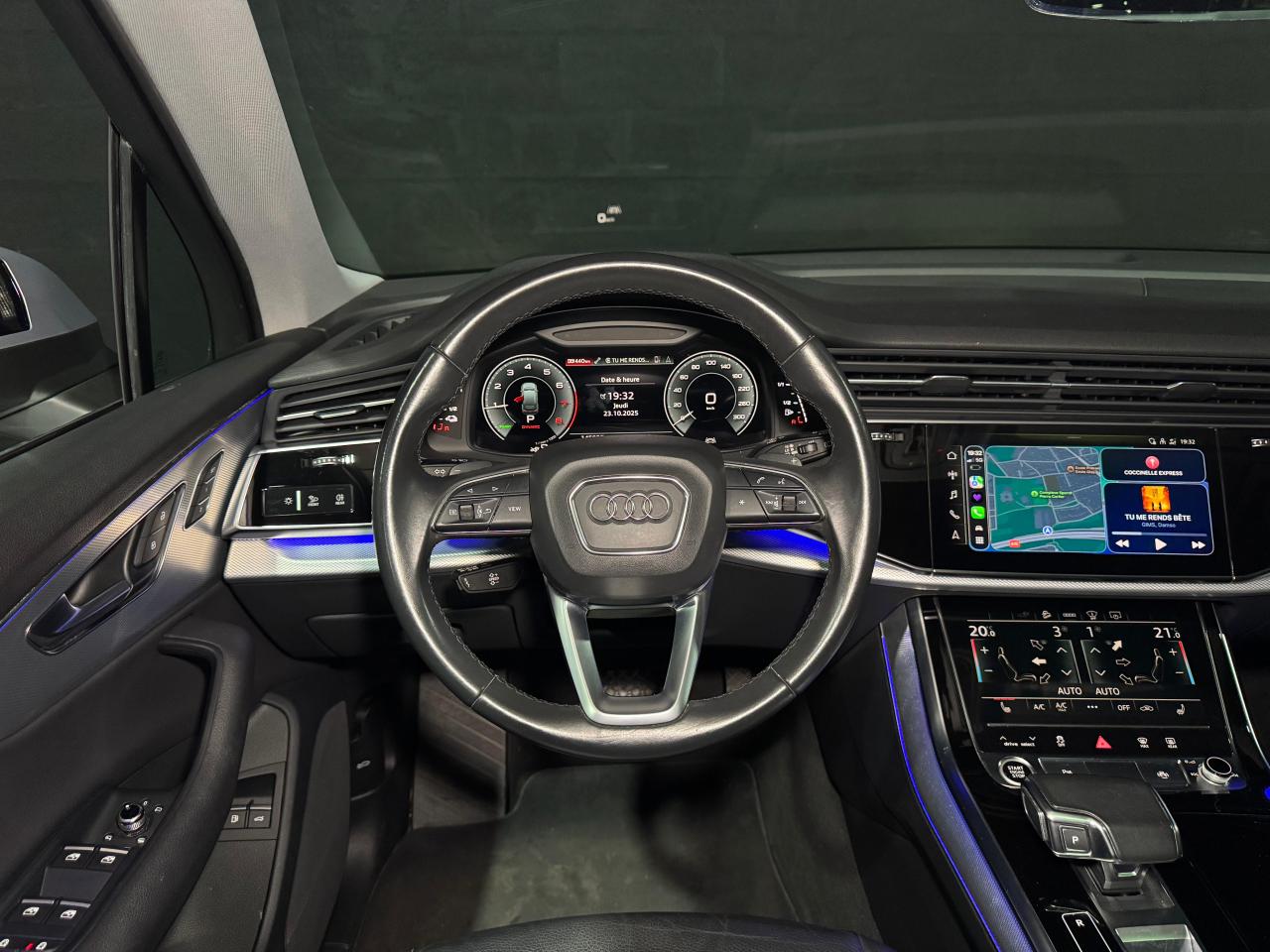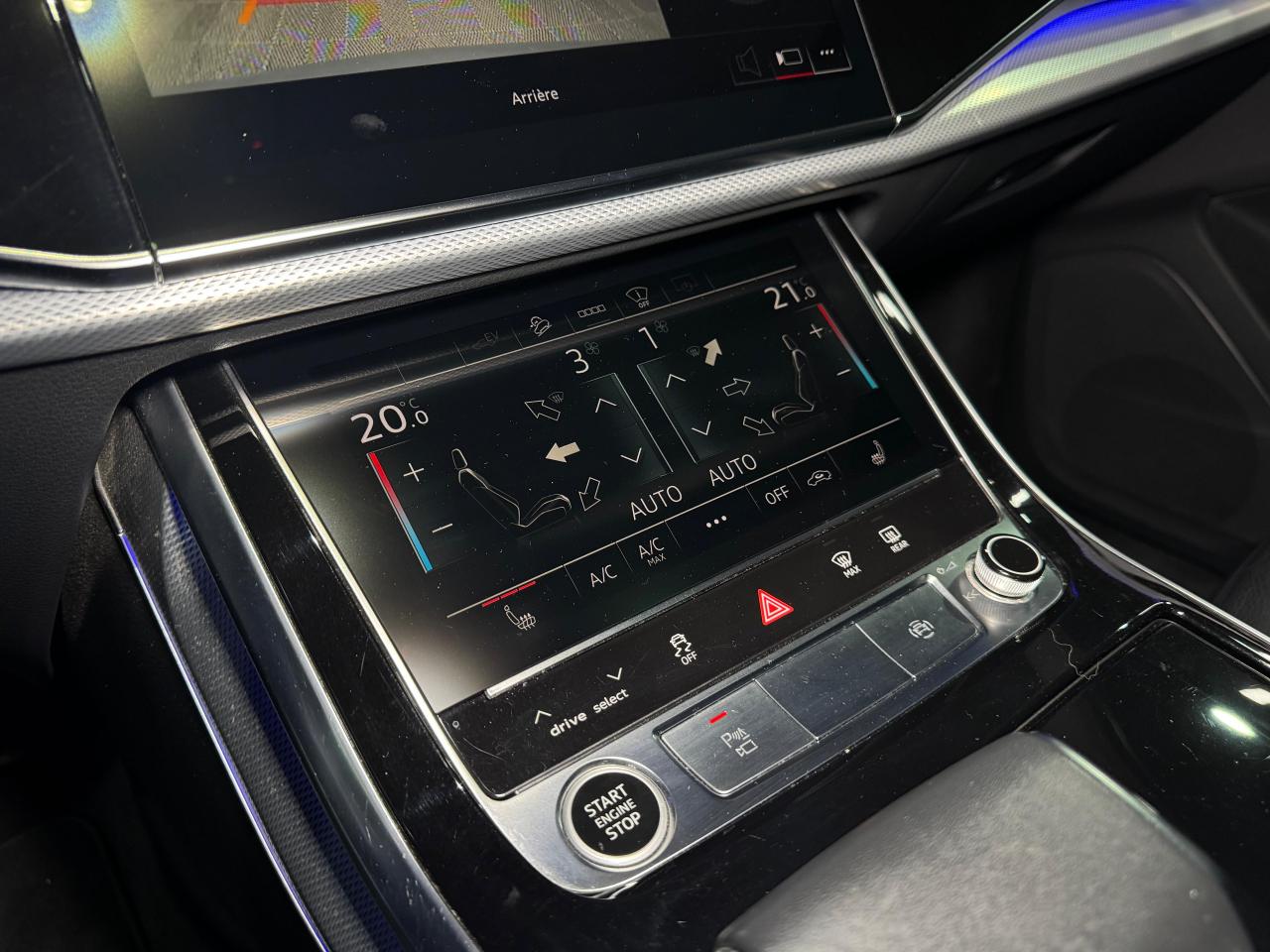 Accoudoir central confort à l'avantAdaptive Air Suspension SportAirbags latéraux à l'avant et système d'airbags de têteAppel d’urgence et service Audi connect incluant commande du véhiculeApplications décoratives en aluminium brossé mat sur tableau de bord, contre-portes et console centraleAppui lombaire à 4 axes pour les sièges avant, réglage électrique, horizontal et verticalAppuie-tête pour sièges avant réglables manuellement en hauteurAssistant de feux de routeAssistant de maintien à l’arrêtAudi connect avec carte SIM intégrée (e-SIM) et licence d'utilisation pour 3 ansAudi Drive SelectAudi parking system plus : signal acoustique et visuel d'aide au stationnement avant et arrière par pictogrammes sur l'écranAudi pre sense basicAudi pre sense frontAudi smartphone interfaceAudi virtual cockpitAvertissement de franchissement de ligne ‘Lane Assist'Badges extérieurs avec identification du modèle avec inscription de la puissance/technologieBanquette arrière plusBoitiers de rétroviseurs extérieurs noir brillantBuses de lave-glace chauffantesCâble électrique 16 A pour recharge en Mode 3 / Type 2 (puissance de charge maximal de 7,2kW)Caméra de reculCaméra multifonction pour système d'assistance à la conduiteChargeur avec câbles pour recharge sur prise secteur (domestique) (puissance de charge maximale de 1.8 kW / 8 A)Clé à fréquence radio (sans safelock)Climatisation automatique confort 3 zonesClimatisation stationnaireCommande de désactivation d'airbag passager avantContrôle de la pression des pneus avec signaux de perte de pressionDirection progressiveEclairage au sol avec projection de logo par technologie LEDEcrous de roues antivol et indicateur de desserrage d’écrousEtriers de freins laqué rougeFixation pour sièges enfants ISOFIX et Top Tether pour les places arrièreFixation pour sièges enfants ISOFIX pour le siège passager avant avec commande de sécurité enfant électrique sur les portières arrièreHayon à ouverture automatiqueInterface BluetoothJantes aluminium 20" design 5 branches style turbine avec pneumatiques 285/45 R 20Lave-phares haute pressionMoulures de seuil éclairées avec inserts en aluminium à l’avant et à l’arrière et inscription "S"Navigation MMI avec MMI touch responseOutillage de bordPack Eclairage intérieur à LEDPack Esthétique NoirPack extérieur "S line"Pack Non fumeurPare-Brise feuilleté AthermiquePare-soleil avec miroir de courtoisie éclairé (conducteur et passager)Peinture vernie Noir ProfondProjecteurs Audi Matrix LEDProtection antidémarrage électroniqueRampes de pavillon laquées noiresRéception radio numériqueRégulateur et limiteur de vitesseRétroviseur intérieur électrochrome sans contourRétroviseurs extérieurs réglables,dégivrants,rabattables électriquement avec Fonction jour/nuit automatique des deux côtés ,rabat automatique pour le rétroviseur extérieur côté passager avant (manoeuvre de stationnement) et CSellerie mixte en cuir et Alcantara avec embossage "S" sur dossiers avantSet de réparations pour pneusSièges avant chauffantsSièges avant réglables électriquementSièges Sport à l'avantSystème audiophonique Audi: 10 Haut-parleurs dont haut-parleur central et subwoofer, amplificateur à 6 canaux, puissance totale 180 wattsSystème de lecture des panneaux de signalisation par caméraSystème de localisation antivol Audi connectSystème de motorisation hybride rechargeable PHEVTouches de commande façon verre en noir avec réponse haptique et aluminium étenduTrousse de secours, triangle de présignalisation et veste de sécuritéVitres arrières surteintées (vitrage privacy)Vitres athermiques sur les côtés et à l’arrière lunette arrière dégivrante, avec minuterieVolant Sport Cuir multifonction en cuir style 3 branches avec méplat + palettes de changement de vitesses