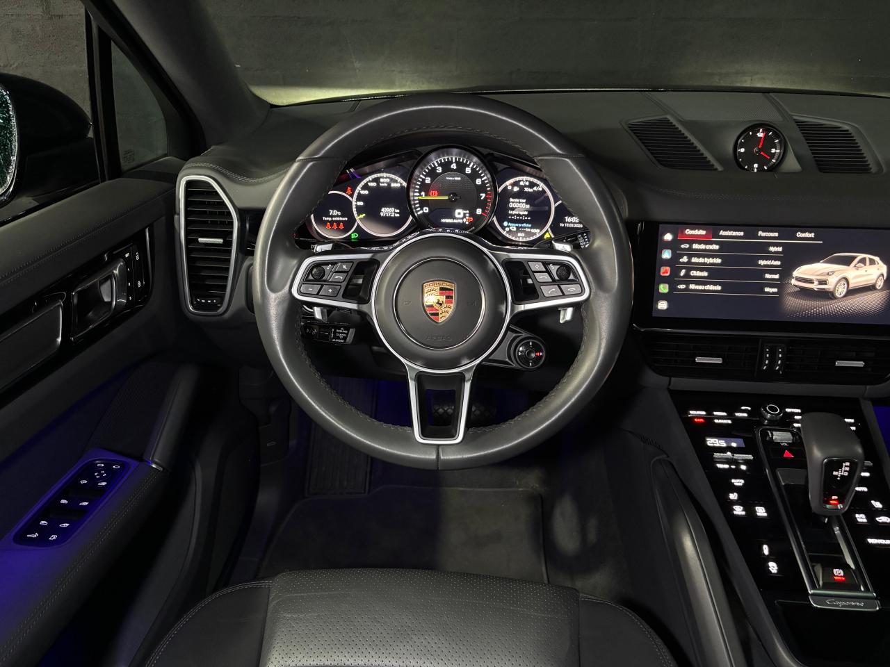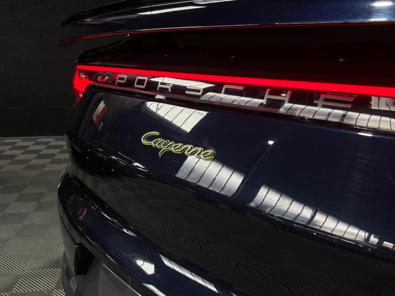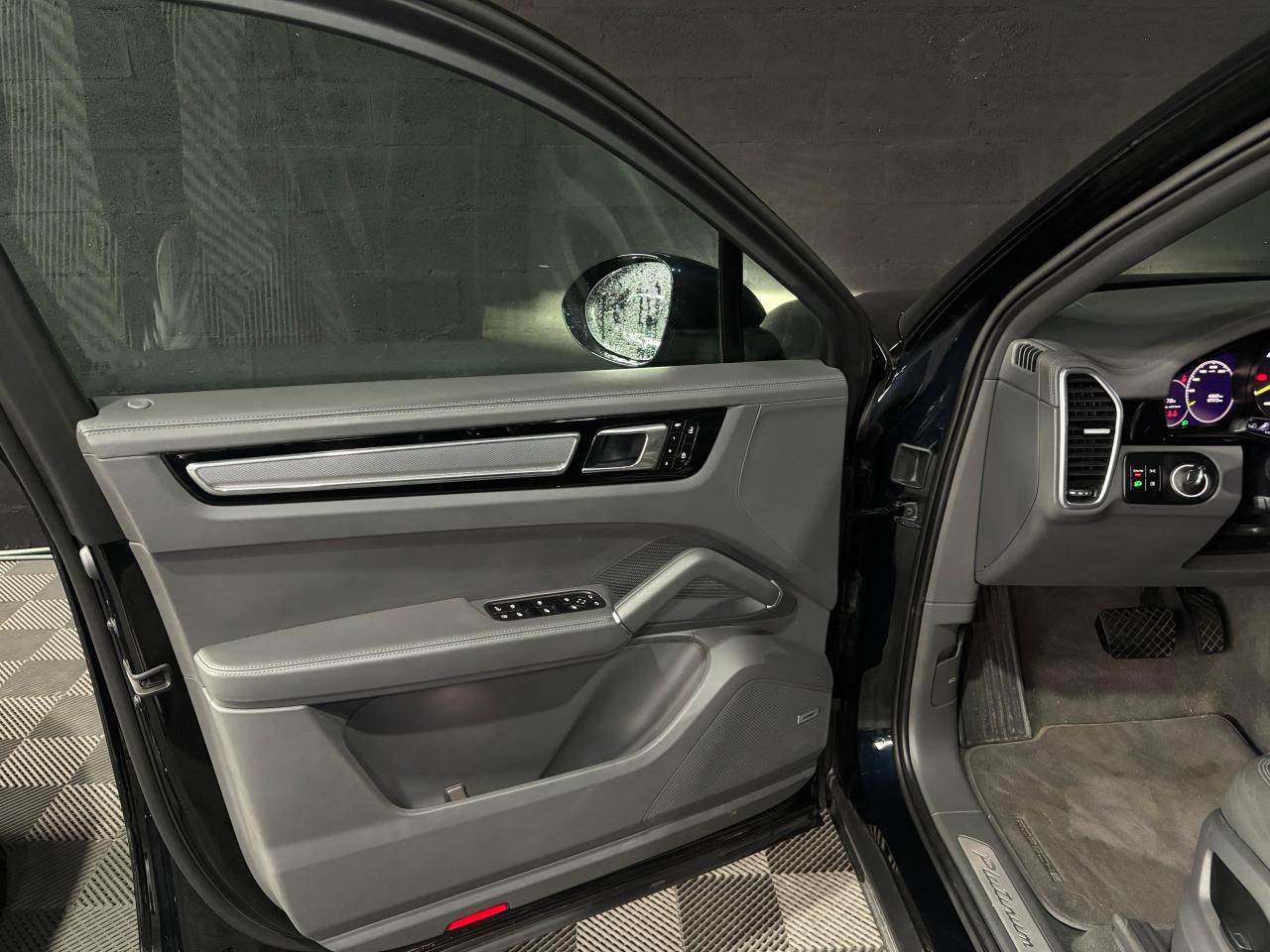 2 ports USB-C de chargement et de connexion dans le coffre de rangement de la console centrale avant2 ports USB-C de recharge à l’arrièreSiège chauffant avant 3 prises de courant (12 volts) : à l’avant sous la boîte à gants, dans la console centrale avant, dans le compartiment à bagages latéral4 places4 portes avec protection anti-encastrement latérale intégréeABS (Antiblocage de roues)Accès ConfortAccoudoir central AR avec 2 porte-gobelets, réglage longitudinalAir Curtains dans les passages de rouesAirbag genoux côté conducteur et passagerAirbags grand volume pour le conducteur et le passagerAirbags latéraux avant (siège avant)Airbags rideauxAlarme et double verrouillageAssistance à la descente (Porsche Hill Control, PHC)Assistance au maintien des distances de sécurité (DCA - Distance Control Assist)Assistance parking avant et arrière avec caméra de reculAssistant d’éclairage automatique avec éclairage d’accompagnementAssistant freinage d'urgence incluant la protection des piétons et des cyclistesBac de rangement dans la console centraleBacs de rangement latéraux de coffreBaguettes de seuil de porte en aluminium brossé avec logo à l’avant "Platinum Edition" et à l'arrière : "Cayenne"Becquet arrière avec troisième feu de stop à LEDBloc moteur en aluminiumBlocs optiques avant avec feux de position et clignotants à conducteurs de lumière à technologie LEDBoîte à gantsBoîte de vitesse Tiptronic S 8 rapportsBOSE Surround Sound System avec 14 haut-parleurs et caisson de basses, puissance totale de 710 wattsBouclier avant avec prises d’air de refroidissement intégréesCâble de charge pour prise domestiqueCâble électrique pour prise industrielle rouge (400 V, 32 A, 5 broches)Capot avant actifCapteur de pluieCarrosserie de conception allégée hybride entièrement galvanisée alliant Acier et AluminiumCarrosserie élargie à l'arrièreCeintures de sécurité automatiques à 3 points avec prétensionneurs pyrotechniques à l'avant et à l'arrière, et limiteur d'effort à l'avantCeintures de sécurité CraieChargeur embarqué (3.6 kW)Châssis avec suspension à ressorts hélicoïdaux avec Porsche Active Suspension Management (PASM)Ciel de toit en tissuClimatisation automatique avec réglage individuel de la température pour le conducteur et le passager, commande automatique du recyclage de l’air avec capteur de qualité de l’air et réglage individuel du débit d’air côtés conducteur eCombiné d’instruments avec 2 écrans haute résolutionCompte tour avec fond de compteur en Noir et aiguilles et indicateur de puissance en Vert AcideConcept d’éclairage de l’habitacle à LED : temporisation d’arrêt, éclairage bas d’habitacle avant et arrière, éclairage du cendrier, de la boîte à gants, du démarreurConnect Care qui comprend appel d'urgence, appel panne, maintenance prédictive, mise à jour OTA, manuel utilisateur digitalConnect Plus avec module de navigation en ligne, module téléphone LTE avec lecteur de carte SIM et accès Internet sans fil ainsi que Porsche Car Connect incluant de nombreux services Porsche ConnectContrôle de pression des pneus ( TPMS )Contrôle de stabilité de la remorque (TSM)Contrôle vocalCouvre-bagages souple enroulableCrochet porte-vêtement sur les montants latéraux (gauche/droite)Culasse en aluminiumDéflecteurs (Airblades) avec entrées d’air latéralesDégivrage de lunette arrière avec arrêt automatiqueDémarrage sans cléDétecteur d'humiditéDirection assistéeDoubles porte-gobelets avant et arrièreEclairage d’ambianceEcusson Porsche sur appuie-tête avant et arrièreÉlargisseur d'ailes couleur carrosserieEnjoliveur de roue avec écusson Porsche en couleurEntourage des vitres en finition noire brillanteEssuie-glace avant à 2 vitesses avec balayage intermittentEtriers de frein couleur Vert AcideFeux arrière à LED avec graphisme tridimensionnel, avec feux stop intégrés 4 points et bandeau lumineuxFeux de jours à DEL 4 pointsFiltre à particulesFonction Auto-HoldFonction Stop-Start automatique et mode CroisièreFrein de parking électriqueFrein multi-collisionHayon arrière avec becquet intégréHayon automatiqueInjection directe d’essence (Direct Fuel Injection, DFI) avec position centrale des injecteursInserts des lamelles des entrées d’air de couleur Platine (finition satinée)Intégration Apple CarPlay et Android Auto sans filIntérieur cuir partiel dans les teintes de série, sièges cuir partiel texturéJantes RS Spyder Design 21 pouces peintes en Platine (finition satinée) avec élargisseurs d'ailes peints en couleur extérieureKit anti-crevaison avec compresseur électriqueLarge soubassement caréné aérodynamiqueLogo "e-hybrid" sur les ailes avant en Platine entouré de Vert AcideMiroirs de courtoisie éclairés conducteur et passagerMode IndividualMode SportMonogramme du modèle sur le hayon arrière, en couleur Platine entouré de Vert AcidePack Intérieur Aluminium texturéPack Mémoire ConducteurPack Sport ChronoPersonnalisation du conducteur pour la climatisation, l’audio et la communication, les systèmes d’assistance et d’autres systèmes du véhicule personnalisablesPhares à DEL avec fonction Porsche Dynamic Light System (PDLS)Pneus mixtesPochettes porte-cartes au dos des siègesPoignées de portes couleur carrosseriePorsche 4D Chassis ControlPorsche Active Aerodynamics (PAA) avec becquet de toit à déploiement adaptatifPorsche Communication Management (PCM) avec module de navigationPorsche Mobile Charger avec support mural, sac de transport et câble de 4,5 mètres de la voiture au chargeurPorsche Traction Management (PTM) : transmission intégrale active avec différentiel central multidisque à régulation électronique et cartographique et accélération antidérapage (ASR)Porsche Vehicle Tracking System (PVTS)Porte-bouteilles dans les contre-portes avant et arrièrePré-climatisationPré-équipement attelagePré-équipement pour systèm