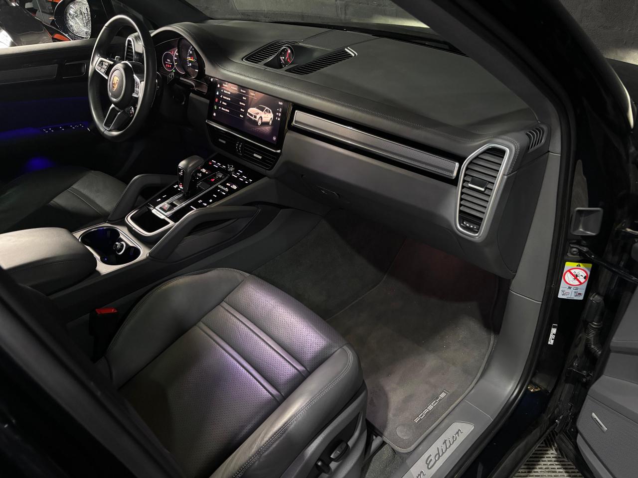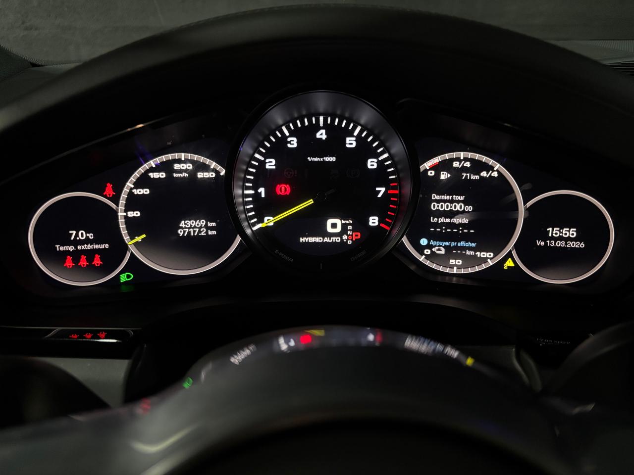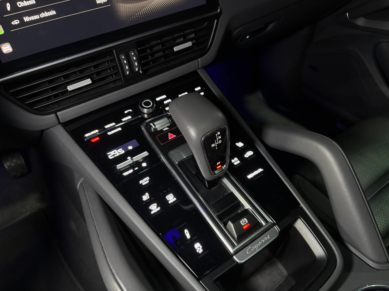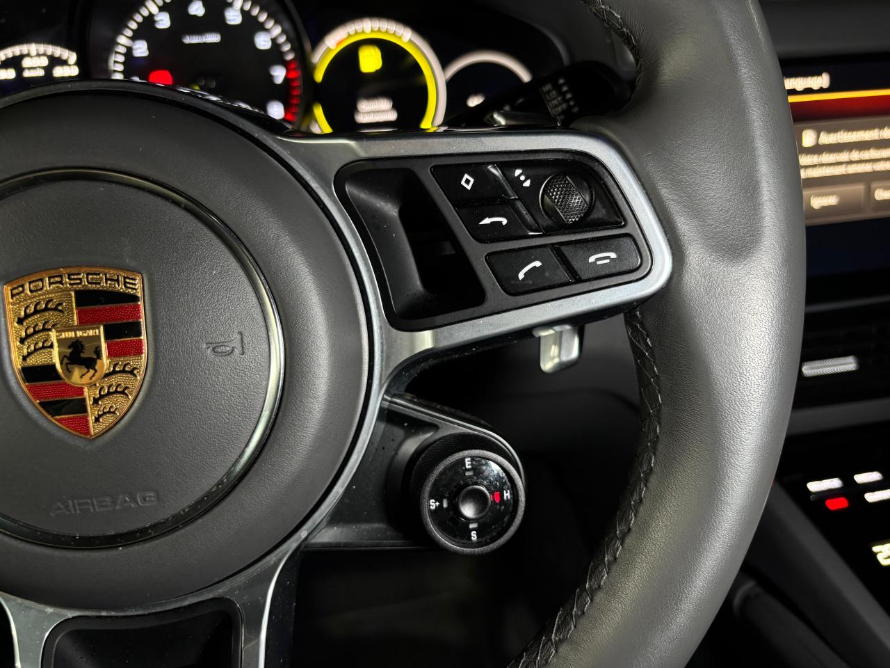 2 ports USB-C de chargement et de connexion dans le coffre de rangement de la console centrale avant2 ports USB-C de recharge à l’arrièreSiège chauffant avant 3 prises de courant (12 volts) : à l’avant sous la boîte à gants, dans la console centrale avant, dans le compartiment à bagages latéral4 places4 portes avec protection anti-encastrement latérale intégréeABS (Antiblocage de roues)Accès ConfortAccoudoir central AR avec 2 porte-gobelets, réglage longitudinalAir Curtains dans les passages de rouesAirbag genoux côté conducteur et passagerAirbags grand volume pour le conducteur et le passagerAirbags latéraux avant (siège avant)Airbags rideauxAlarme et double verrouillageAssistance à la descente (Porsche Hill Control, PHC)Assistance au maintien des distances de sécurité (DCA - Distance Control Assist)Assistance parking avant et arrière avec caméra de reculAssistant d’éclairage automatique avec éclairage d’accompagnementAssistant freinage d'urgence incluant la protection des piétons et des cyclistesBac de rangement dans la console centraleBacs de rangement latéraux de coffreBaguettes de seuil de porte en aluminium brossé avec logo à l’avant "Platinum Edition" et à l'arrière : "Cayenne"Becquet arrière avec troisième feu de stop à LEDBloc moteur en aluminiumBlocs optiques avant avec feux de position et clignotants à conducteurs de lumière à technologie LEDBoîte à gantsBoîte de vitesse Tiptronic S 8 rapportsBOSE Surround Sound System avec 14 haut-parleurs et caisson de basses, puissance totale de 710 wattsBouclier avant avec prises d’air de refroidissement intégréesCâble de charge pour prise domestiqueCâble électrique pour prise industrielle rouge (400 V, 32 A, 5 broches)Capot avant actifCapteur de pluieCarrosserie de conception allégée hybride entièrement galvanisée alliant Acier et AluminiumCarrosserie élargie à l'arrièreCeintures de sécurité automatiques à 3 points avec prétensionneurs pyrotechniques à l'avant et à l'arrière, et limiteur d'effort à l'avantCeintures de sécurité CraieChargeur embarqué (3.6 kW)Châssis avec suspension à ressorts hélicoïdaux avec Porsche Active Suspension Management (PASM)Ciel de toit en tissuClimatisation automatique avec réglage individuel de la température pour le conducteur et le passager, commande automatique du recyclage de l’air avec capteur de qualité de l’air et réglage individuel du débit d’air côtés conducteur eCombiné d’instruments avec 2 écrans haute résolutionCompte tour avec fond de compteur en Noir et aiguilles et indicateur de puissance en Vert AcideConcept d’éclairage de l’habitacle à LED : temporisation d’arrêt, éclairage bas d’habitacle avant et arrière, éclairage du cendrier, de la boîte à gants, du démarreurConnect Care qui comprend appel d'urgence, appel panne, maintenance prédictive, mise à jour OTA, manuel utilisateur digitalConnect Plus avec module de navigation en ligne, module téléphone LTE avec lecteur de carte SIM et accès Internet sans fil ainsi que Porsche Car Connect incluant de nombreux services Porsche ConnectContrôle de pression des pneus ( TPMS )Contrôle de stabilité de la remorque (TSM)Contrôle vocalCouvre-bagages souple enroulableCrochet porte-vêtement sur les montants latéraux (gauche/droite)Culasse en aluminiumDéflecteurs (Airblades) avec entrées d’air latéralesDégivrage de lunette arrière avec arrêt automatiqueDémarrage sans cléDétecteur d'humiditéDirection assistéeDoubles porte-gobelets avant et arrièreEclairage d’ambianceEcusson Porsche sur appuie-tête avant et arrièreÉlargisseur d'ailes couleur carrosserieEnjoliveur de roue avec écusson Porsche en couleurEntourage des vitres en finition noire brillanteEssuie-glace avant à 2 vitesses avec balayage intermittentEtriers de frein couleur Vert AcideFeux arrière à LED avec graphisme tridimensionnel, avec feux stop intégrés 4 points et bandeau lumineuxFeux de jours à DEL 4 pointsFiltre à particulesFonction Auto-HoldFonction Stop-Start automatique et mode CroisièreFrein de parking électriqueFrein multi-collisionHayon arrière avec becquet intégréHayon automatiqueInjection directe d’essence (Direct Fuel Injection, DFI) avec position centrale des injecteursInserts des lamelles des entrées d’air de couleur Platine (finition satinée)Intégration Apple CarPlay et Android Auto sans filIntérieur cuir partiel dans les teintes de série, sièges cuir partiel texturéJantes RS Spyder Design 21 pouces peintes en Platine (finition satinée) avec élargisseurs d'ailes peints en couleur extérieureKit anti-crevaison avec compresseur électriqueLarge soubassement caréné aérodynamiqueLogo "e-hybrid" sur les ailes avant en Platine entouré de Vert AcideMiroirs de courtoisie éclairés conducteur et passagerMode IndividualMode SportMonogramme du modèle sur le hayon arrière, en couleur Platine entouré de Vert AcidePack Intérieur Aluminium texturéPack Mémoire ConducteurPack Sport ChronoPersonnalisation du conducteur pour la climatisation, l’audio et la communication, les systèmes d’assistance et d’autres systèmes du véhicule personnalisablesPhares à DEL avec fonction Porsche Dynamic Light System (PDLS)Pneus mixtesPochettes porte-cartes au dos des siègesPoignées de portes couleur carrosseriePorsche 4D Chassis ControlPorsche Active Aerodynamics (PAA) avec becquet de toit à déploiement adaptatifPorsche Communication Management (PCM) avec module de navigationPorsche Mobile Charger avec support mural, sac de transport et câble de 4,5 mètres de la voiture au chargeurPorsche Traction Management (PTM) : transmission intégrale active avec différentiel central multidisque à régulation électronique et cartographique et accélération antidérapage (ASR)Porsche Vehicle Tracking System (PVTS)Porte-bouteilles dans les contre-portes avant et arrièrePré-climatisationPré-équipement attelagePré-équipement pour systèm